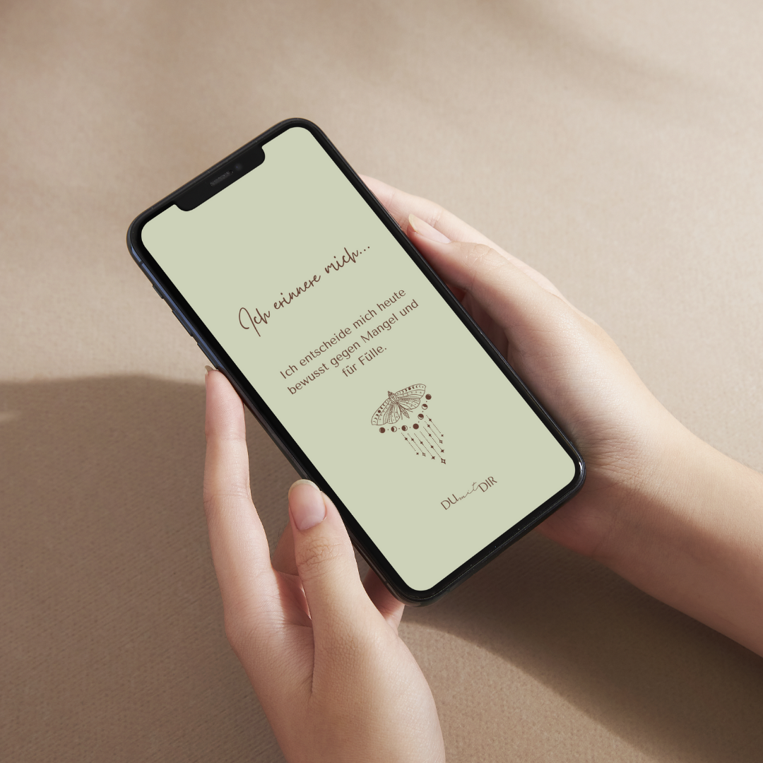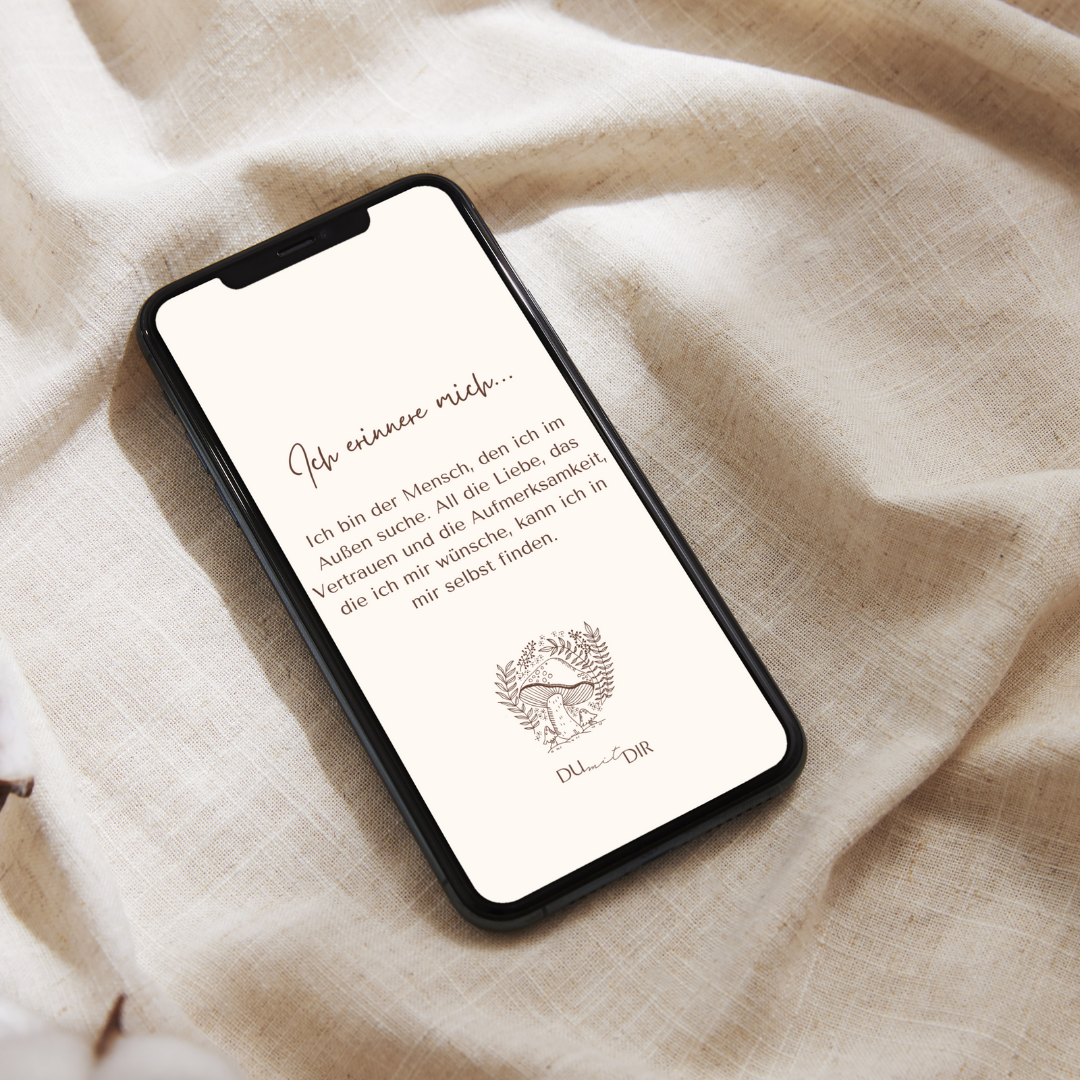 Die Affirmationen, die Du dir als Handy-Hintergrund einstellen oder auch ausdrucken kannst sind jeden Tag eine liebevolle Erinnerung für Dich selbst, zu Dir zu stehen, zu vertrauen und Deinen Weg zu Dir wiederzufinden.