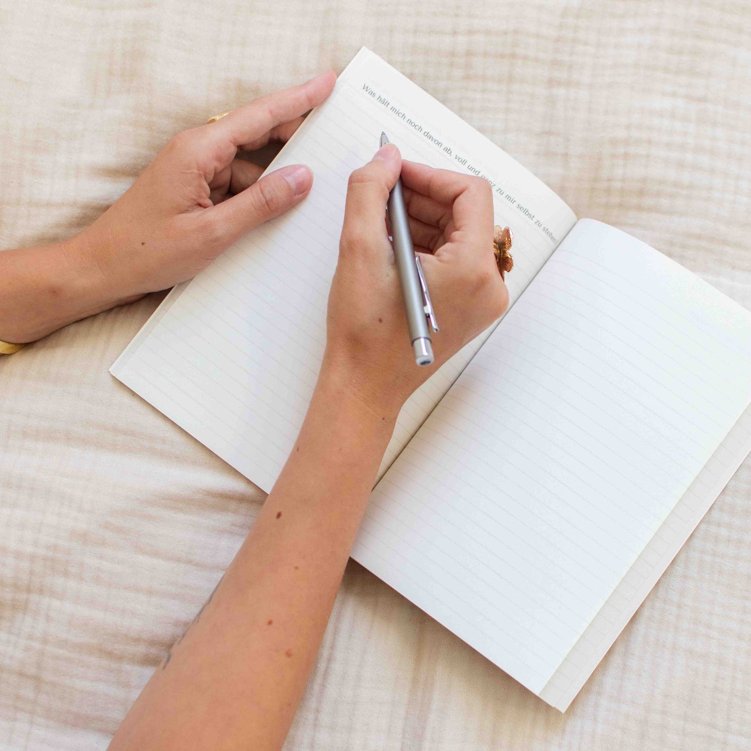 Mit tiefen Journalingfragen, liebevollen Impulsen und Reflexionsübungen – wie ein Gespräch mit Dir selbst.