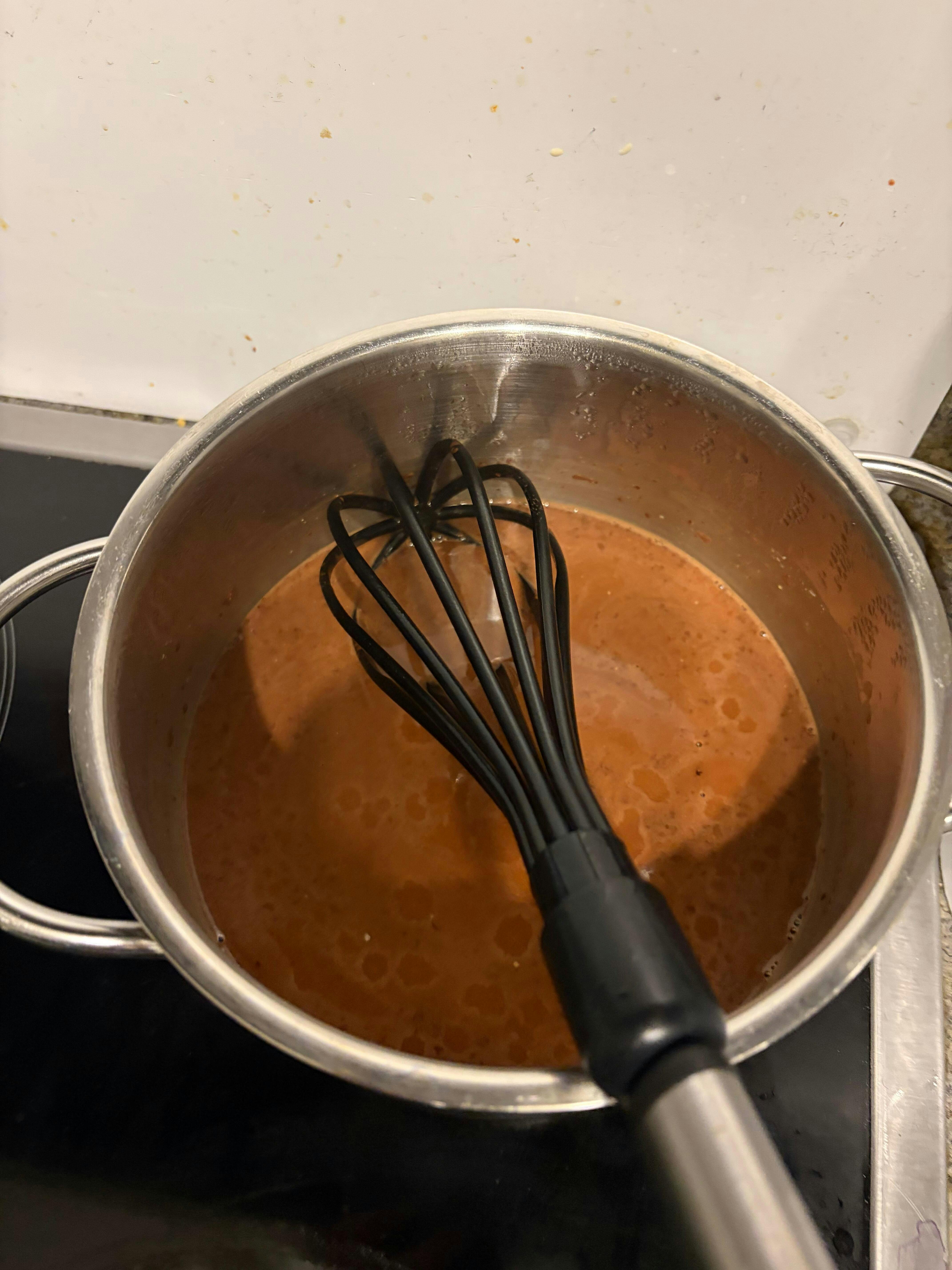 - Sanft und langsam auflösen, mit einem Schneebesen oder Milchaufschäumer leicht aufschäumen.